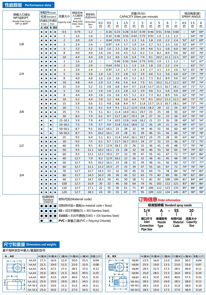 AX-W和BX-W系列廣角扇形噴嘴具有與A-W和B-W系列同樣的性能,外加延長(zhǎng)壽命的坡底設(shè)計(jì)優(yōu)點(diǎn),